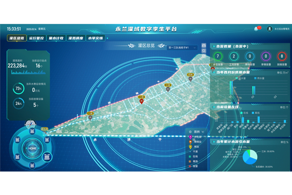 基于物联网、大数据、数字孪生等新兴技术,将现实灌区映射到数字世界中,通过三维模型、专业模型、数据图表、实时视频等要素,直观展示灌区的实时数据和运行动态并进行智能化模拟,实现对灌区水资源的高效利用、精准灌溉,旨在提升灌区管理的智能化、高效化、信息化水平。