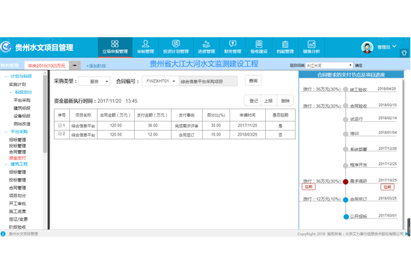 对项目人力、资金、物资、设备和信息等全要素进行全过程统一管理,实现项目过程流程化、资金使用透明化,管理功能覆盖“前期规划 - 立项 - 资金 - 招投标 - 实施 - 验收 - 支付 - 归档”全生命周期的数字化闭环管理平台。